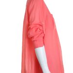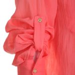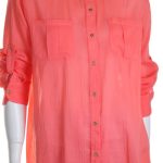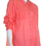 Новая хлопковая блуза Calvin Klein редкого кораллового цвета. Свободный рубашечный покрой с большими накладными кармашками на груди и длинным отворачиваемым на пуговку рукавом. Застежка на фирменные золотые пуговки. Классический отложной воротничок. Скругленная линия низа. Кокетка и вытачка по спинке для комфортной посадки. В составе: 100% хлопок — ткань экстра качества: легкая, воздушная, полу-прозрачная. Состояние — новое, с оригинальной биркой магазина Calvin Klein. Цена на бирке — 69.5$.