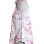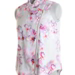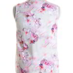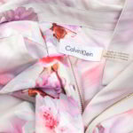 Фирменная блуза Calvin Klein с цветочным принтом в розово-сиреневых тонах с воротником стойкой. Удлиненная скругленная спинка. Застежка по переду на скошенную золотую молнию. Свободный фасон в стиле «трапеция». Безрукавка. В составе 100% полиэстр — мягкий, бархатистый, приятный к телу, дышащий. Длина по середину ягодиц. Состояние — идеальное, как новое.