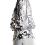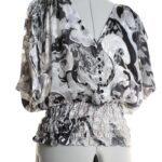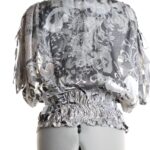 Блуза итальянского бренда Cappopera в светло-серых цветочных тонах с широкой резинкой по талии, приспущенным присборенным рукавом «летучая мышь» и открытой линией декольте. Застежка на пуговки. В составе: 82% вискоза, 18% натуральный шелк — ткань мягкая, легкая, практически невесомая. Состояние — идеальное, как новое.