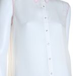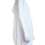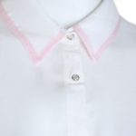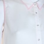 Новая хлопковая блуза легендарного французского бренда Cop Copine белого цвета. Прямой фасон «безрукавка» с классическим воротничком и удлиненной спинкой. Фирменная вышивка и вырез «лодочка» по спинке. Нежно-розовая окантовка швов. Застежка на перламутровые кнопки. В составе: 67% хлопок, 33% п.э — ткань легкая, воздушная, полу-прозрачная. Состояние — новое, с фирменной биркой Cop Copine.