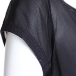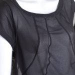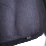 Новая блуза легендарного французского бренда Cop Copine черного цвета. Свободный прямой фасон с коротким рукавом, скругленной горловиной и линией низа. Отделка горловины и рукава мягкой бейкой с нитями люрекса. Красивая скругленная отстрочка по груди и спинке. Фирменная плашка Cop. Без застежки. В составе: 77% вискоза, 23% полиамид — ткань легкая, мягкая, полу-прозрачная. Состояние — новое, с оригинальной запломбированной биркой Cop Copine.