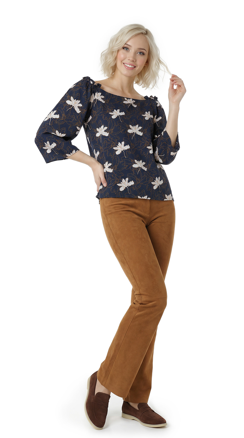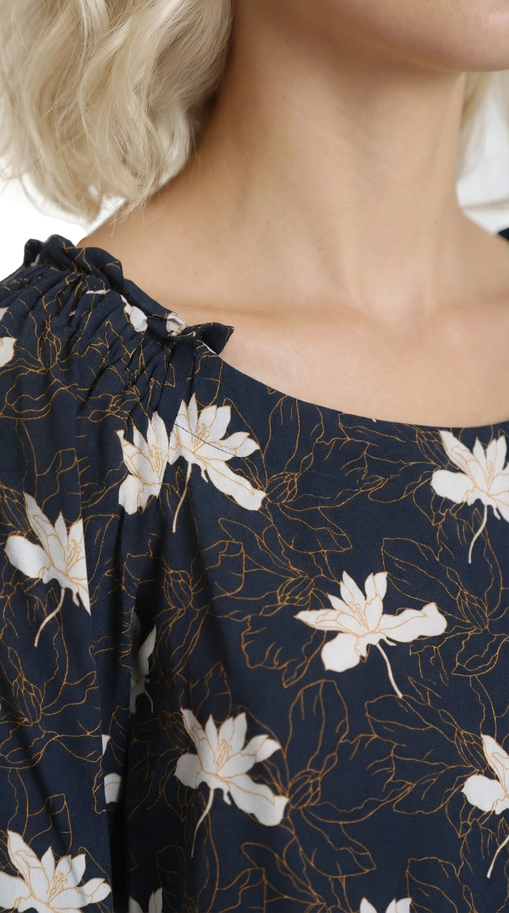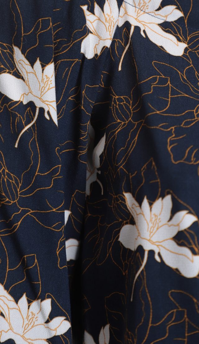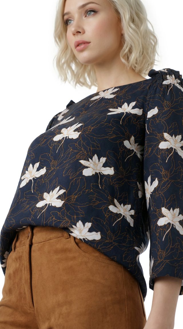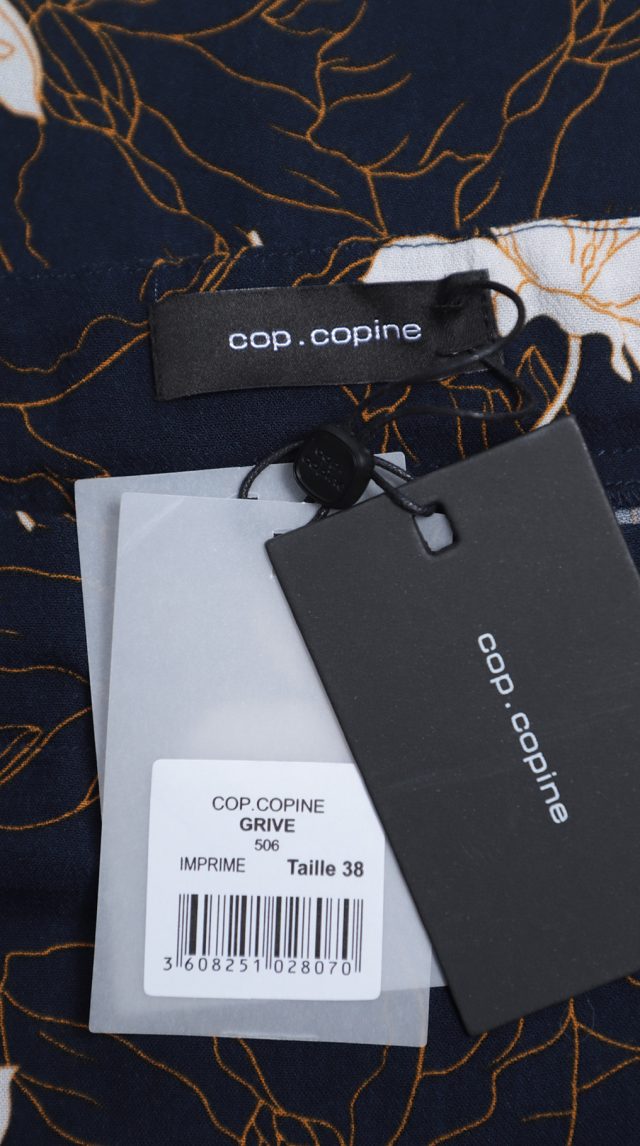 Новая блуза легендарного французского бренда Cop Copine с ярким цветочным принтом на темно-синем фоне. Свободный фасон «трапеция» с рукавом 3/4, воротничком «лодочка», резинкой и рюшами на плечах. Без застежки. В составе 100% вискоза — ткань плотная, мягкая, шелковистая. Состояние — новое, с оригинальной запломбированной биркой Cop Copine.