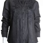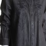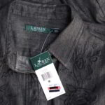 Новая блуза Ralph Lauren черного (графитового) цвета с цветочной аппликацией на груди. Прямой, рубашечный покрой с классическим отложным воротничком. Застежка на фирменные пуговки с гравировкой бренда Ralph Lauren. Скругленная линия низа. Кокетка по спинке. Длинный рукав с широкой манжетой. В составе: 100% хлопок — ткань плотная, мягкая, джинсовая по фактуре, с прекрасным естественным блеском. Состояние — новое, с фирменной биркой магазина Ralph Lauren. Цена на бирке — 125$.
