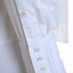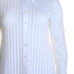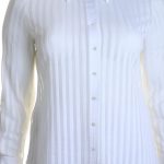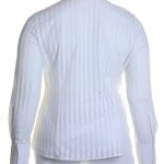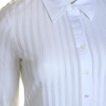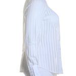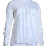 «Секси» блуза американского бренда класса «люкс» Etcetera кипельно-белого цвета. Женственный фасон с длинным рукавом и классическим отложным воротничком. Широкая манжета на рукавах, декорированная пуговками. Застежка на перламутровые пуговки. В составе: — ткань полу-прозрачная, фактурная (в сочетании ажурных полос). Оригинал из США. Состояние — отличное.