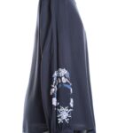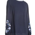 Женственная блуза английского бренда F&F темно-синего цвета из 100% натуральной вискозы с цветочной аппликацией на длинных рукавах. Свободный прямой покрой. Вырез «капелька» по спинке с застежкой на пуговку. Ткань очень мягкая, шелковистая на ощупь, приятная к телу. Состояние — идеальное, как новое.