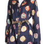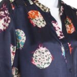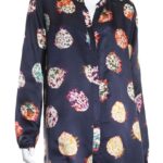 Блуза элитного немецкого бренда Hugo Boss (премиальная коллекция — Boss Orange) темно-синего цвета с ярким принтом в рыже-зелено-фиолетовых тонах. Свободный прямой фасон оверсайз с длинным рукавом, V-образным вырезом горловины и застежкой на пуговки. Стильная декорация по линии плеча в виде нашивных полос. Фирменная золотая «монетка» с гравировкой Boss Orange. Складочка по спинке для комфортной посадки. Будет отлично смотреться с поясом (для примера, в комплект не входит). В составе: 35% натуральный шелк, 65% вискоза — ткань экстра качества: средней плотности, мягкая, шелковистая. Оригинал. Состояние — отличное.