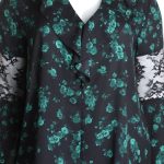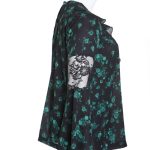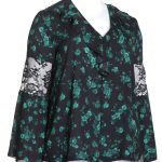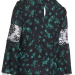 Новая блуза итальянского бренда Rinascimento (коллекция Kitana) черного цвета с ярким цветочным принтом в зеленых тонах. Свободный покрой «трапеция» с длинным расклешенным рукавом, декорированным гипюровой вставкой. Красивая окантовка горловины воланами. Застежка по спинке на пуговку. В составе: 100% п/э — ткань мягкая, шелковистая, приятная к телу. Состояние — новое, с фирменной биркой Kitana.