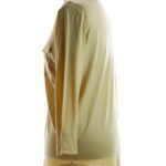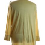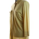 Трикотажная блуза Lands End золотистого цвета. В составе 90% лиоцелла (волокно, производимое из древесины эвкалипта) и 10% шелка. Ткань приятная на ощупь, очень мягкая и шелковистая, с небольшим стретчем. Фасон прямой, рубашечный, длиной ниже ягодиц. Рукав 3/4 с широкой манжетой. На груди большие накладные карманы. Будет прекрасно смотреться с зауженными трикотажными брючками. Как новая, в идеальном состоянии.
