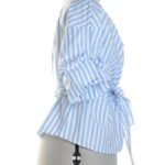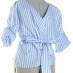 Хлопковая блуза шведского бренда Lindex на запах в бело-голубую полоску с коротким присборенным рукавом. В составе: 100% хлопок — ткань легкая, хорошо держит форму. Состояние — идеальное, как новое.