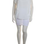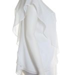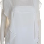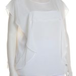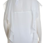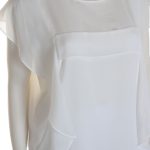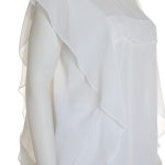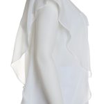 Новая блуза концерна Max Mara (линия Marina Rinaldi) молочно белого цвета. Женственный прямой двухслойный фасон с воланами и коротким рукавом. Красивая вставка по линии груди. Вырез «капелька» по спинке. Без застежки. Элегантное дополнение к юбочке или брючкам. В составе: 100% п.э — ткань экстра качества: легкая, фактурная («крепе»). Пошив — Тунис. Состояние — новое, из аутлета концерна Max Mara (ярлык бренда надрезан — это политика аутлета).