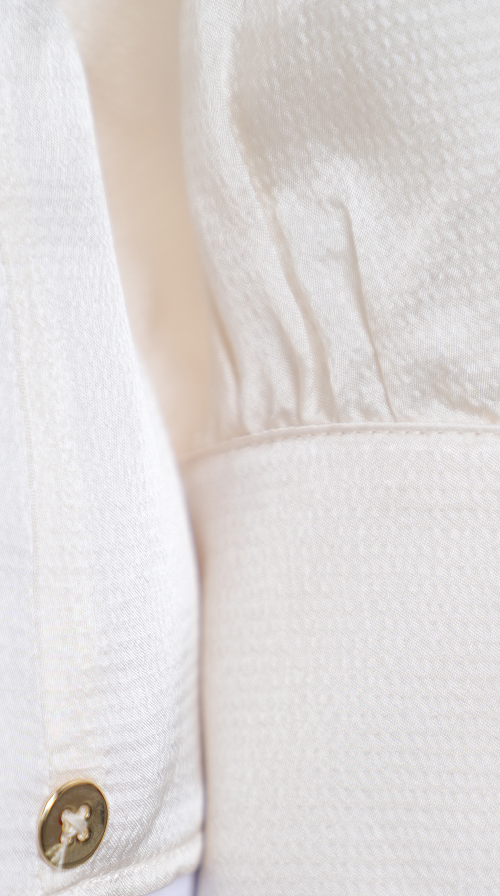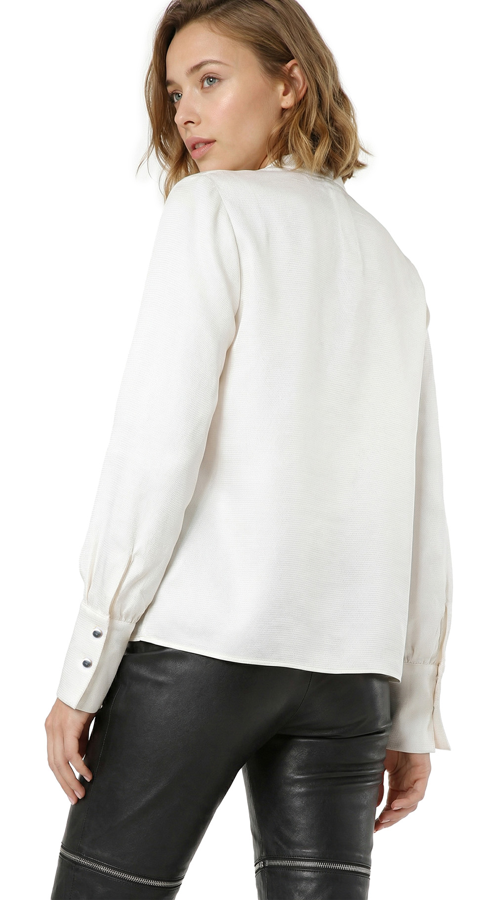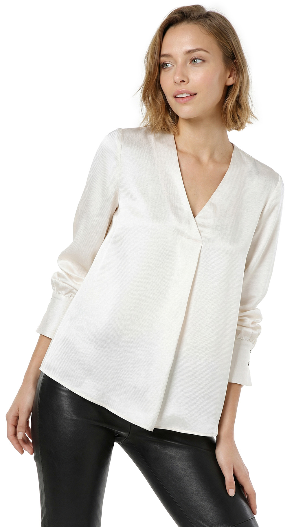 Новая блузка итальянского концерна Max Mara (линия PennyBlack) молочно-белого цвета. Прямой фасон с V-вырезом горловины и длинным рукавом на широкой манжете, декорированной золотыми пуговками. Изюминка блузы — складочка по переду, придающая фасону легкость и женственность. Фирменный золотой шильдик с гравировкой бренда. Пошив — Молдова. В составе: 100% вискоза: ткань экстра качества: легкая, шелковистая, фактурная. Состояние — новое, с оригинальной биркой PennyBlack.