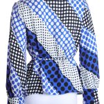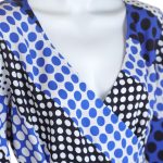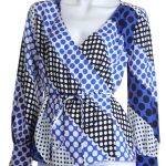 Оригинал. Новая блуза концерна Max Mara с ярким принтом «шарики» в сине-бело-черных тонах. Женственный приталенный фасон на запах с глубоким V-вырезом горловины и подвязкой на кантик по талии. Длинный рукав «фонарик» с широкой манжетой. В составе: 100% вискоза — ткань экстра качества: средней плотности, очень мягкая, приятная к телу. Состояние — новое, из аутлета концерна Max Mara (ярлык бренда надрезан — это политика аутлета).