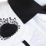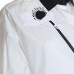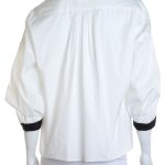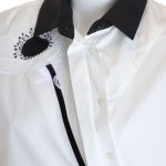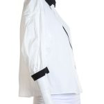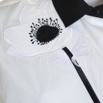 Оригинал. Новая блуза-рубашка концерна Max Mara (линия Weekend) молочно-белого цвета с цветочной вышивкой и контрастным черным воротничком и манжетами. Оригинальный свободный укороченный крой. Широкий приспущенный рукав «фонарик» длиной 3/4 с заниженной проймой. Скошенная застежка на пуговки с гравировкой бренда Weekend за потайной планкой. Складочки по спинке — придают красивый объем и обеспечивают комфортную посадку. В составе: 100% хлопок — ткань экстра качества: легкая, мягкая, комфортная в носке. Состояние — новое, из аутлета концерна Max Mara (ярлык бренда надрезан — это политика аутлета).