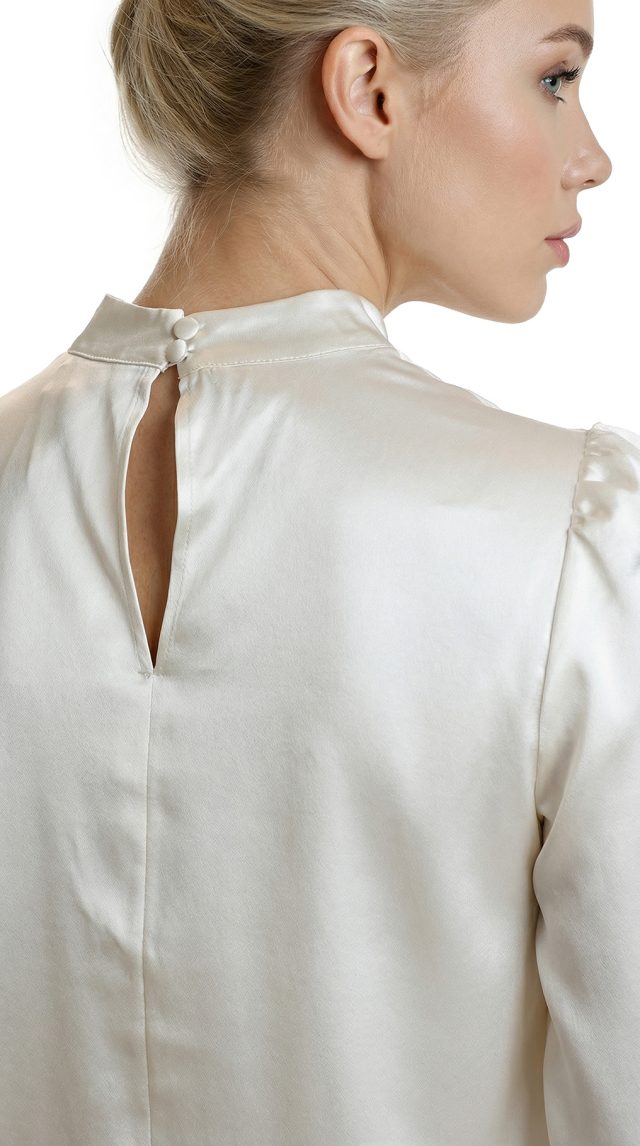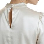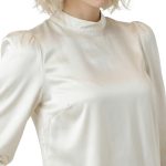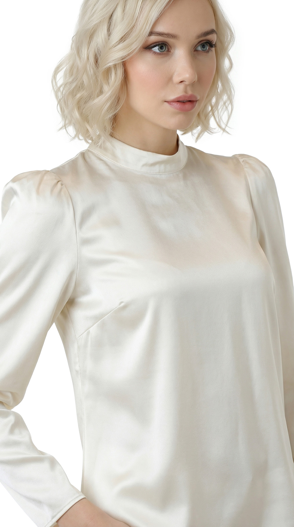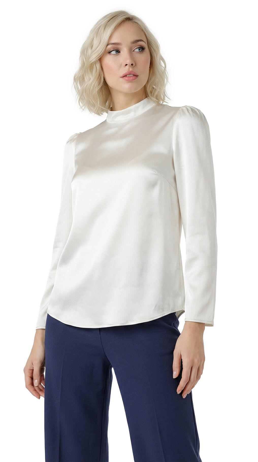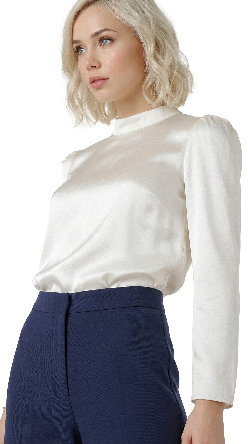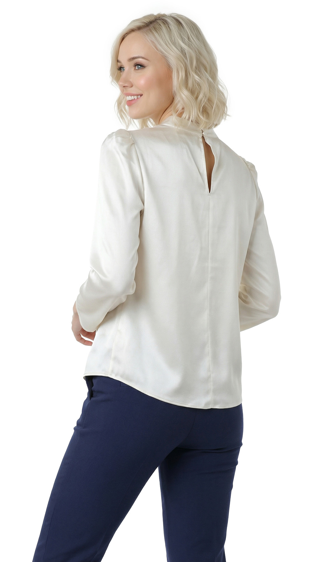 Оригинал. Новая шелковая блуза концерна Max Mara (линия Weekend) молочного цвета. Женственный фасон с воротничком стойка и секси-«капелькой» по спинке с застежкой на пуговки. Рукав красиво присборенный от плеча. В составе: 93% натуральный шелк, 7% эластан — шелк экстра качества: плотного плетения, нежный, с благородным шелковым отливом. Пошив — Европа (Болгария). Состояние — новое, из аутлета концерна Max Mara (ярлык бренда надрезан — это политика аутлета).