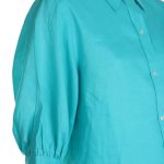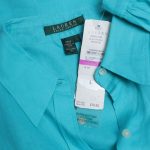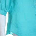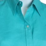Новая льняная блузка Ralph Lauren цвета аквамарин. Элегантный приталенный фасон с отложным воротником и рукавом «фонарик» длиной 1/2. Застежка на фирменные перламутровые пуговки с гравировкой бренда Ralph Lauren. В составе: 100% лен — ткань легкая, тисненая, с естественным блеском натурального льна. Оригинал из США. Состояние — новое, с фирменной биркой Ralph Lauren. Цена на бирке — 79.5$.