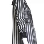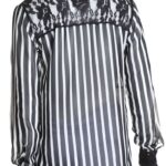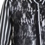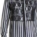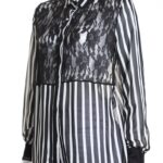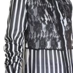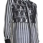 Новая секси-блуза итальянского бренда Rinascimento в черно-белую полоску с гипюровой вставкой. Свободный прямой фасон с длинным рукавом. Застежка на пуговки (одна пуговка — как яркий бриллиант). В составе: п/э — ткань легкая, практически невесомая, полупрозрачная. Состояние — новое, с фирменной биркой Rinascimento.