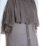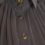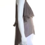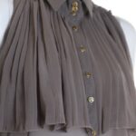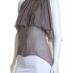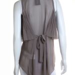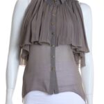 Новая дизайнерская блуза итальянского бренда Rinascimento цвета трюфеля с открытым плечом, плиссировкой на груди, яркими золотыми пуговками и подвязкой на поясок по талии. Свободный фасон «трапеция» с удлиненной спинкой и подвязкой на поясок. Воротничок стойка. Состав: п/э — ткань мягкая, легкая, практически невесомая, по фактуре крепе. Состояние — новое, с фирменной биркой Rinascimento.