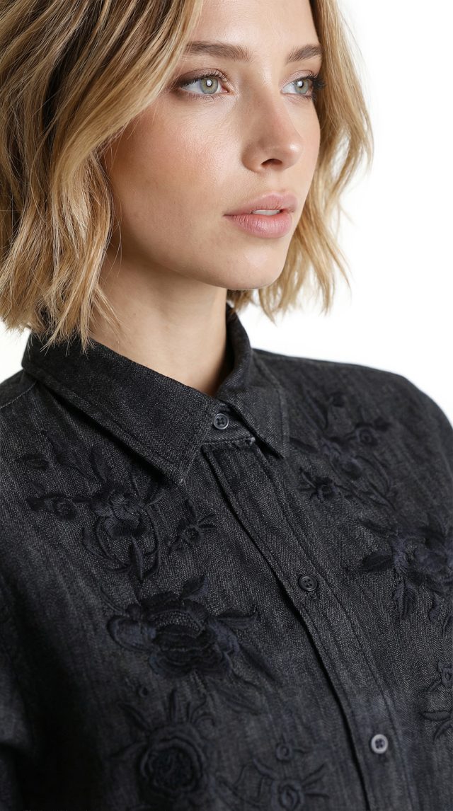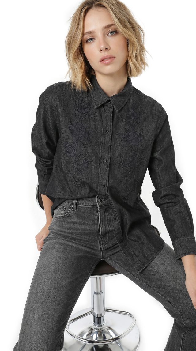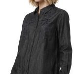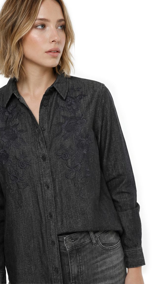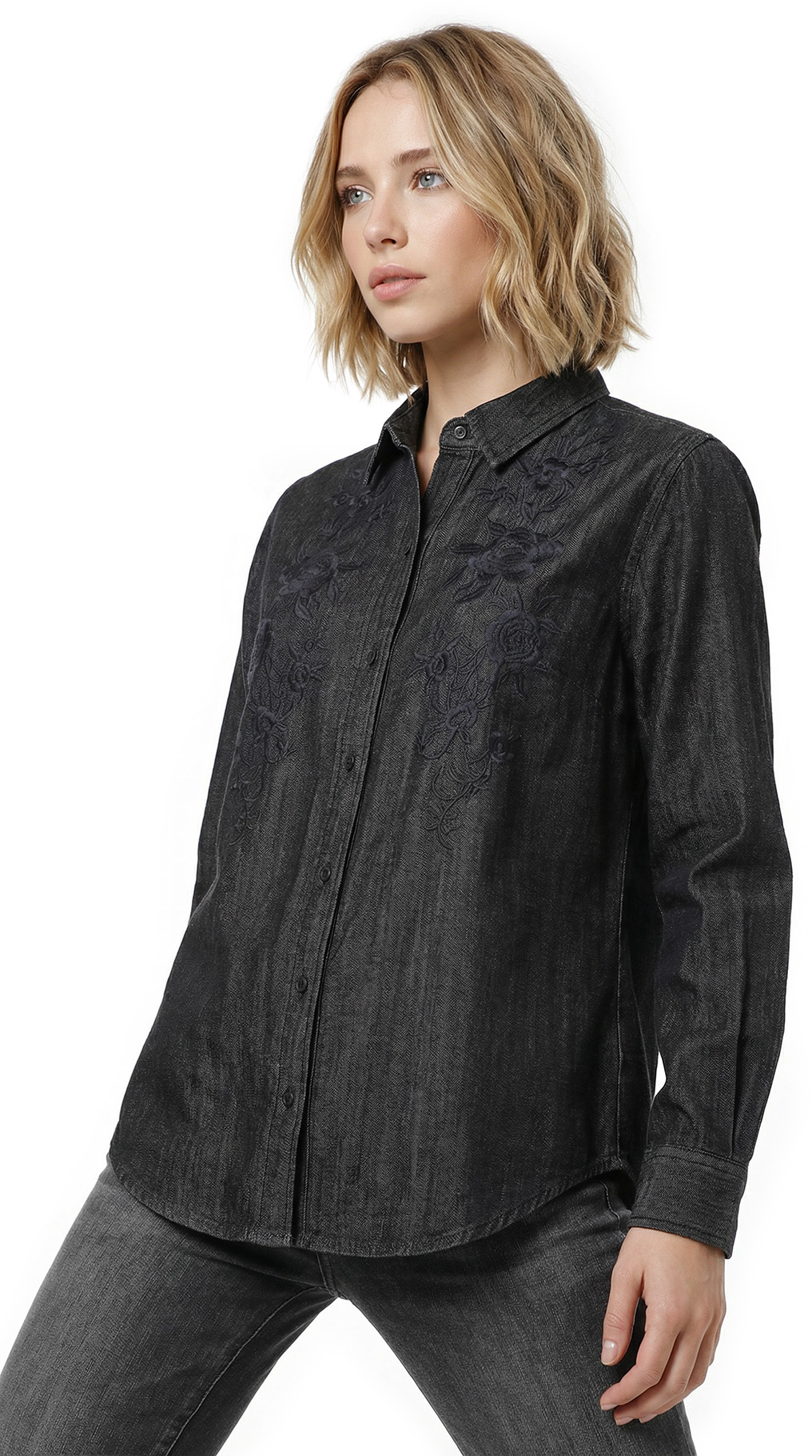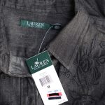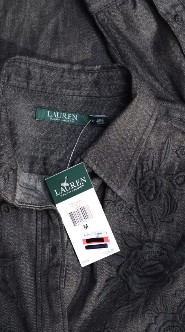 Новая блуза рубашка Ralph Lauren черного (графитового) цвета с цветочной аппликацией на груди. Прямой, рубашечный покрой с классическим отложным воротничком. Застежка на фирменные пуговки с гравировкой бренда Ralph Lauren. Скругленная линия низа. Кокетка по спинке. Длинный рукав с широкой манжетой. В составе: 100% хлопок — ткань плотная, мягкая, джинсовая по фактуре, с прекрасным естественным блеском. Состояние — новое, с фирменной биркой магазина Ralph Lauren. Цена на бирке — 125$.