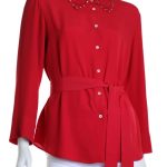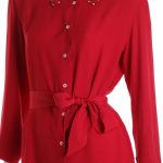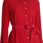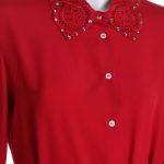 Оригинал. Блуза французского бренда класса люкс Sandro Paris яркого красного цвета. Свободный прямой фасон с длинным рукавом и подвязкой на пояс по талии. Классический отложной воротничок, красиво декорированный кружевом и стразами. Застежка на перламутровые пуговки. Элегантное дополнения гардероба в любое время года. В составе: 100% вискоза — ткань экстра качества: средней плотности, мягкая, бархатистая. Состояние — идеальное, как новое.