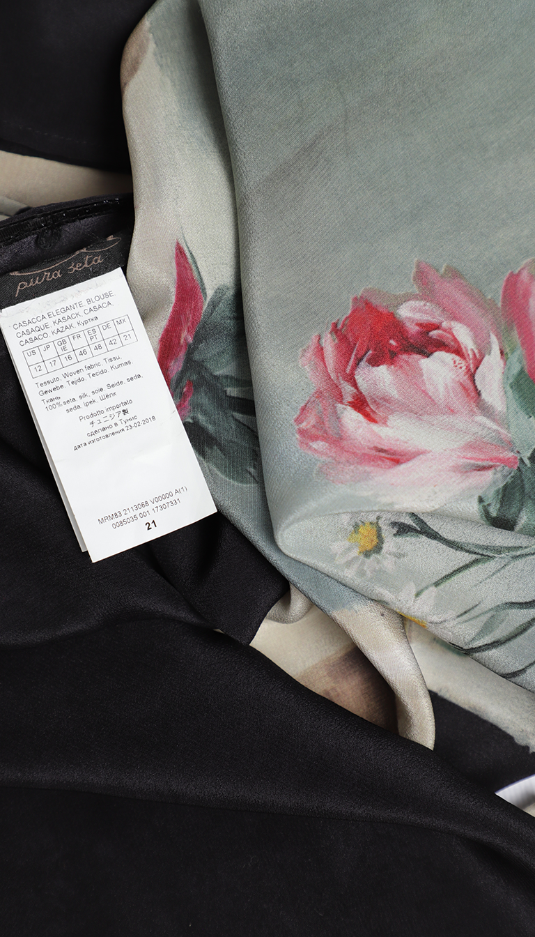 Новая шелковая блуза туника концерна Max Mara (линия Marina Rinaldi) с нежным цветочным принтом в акварельной технике. Удлиненный, свободный в груди и талии, и зауженный к бедрам фасон, с приспущенным рукавом длиной 1/2. Без застежки. В составе: 100% натуральный шелк — ткань экстра качества: легкая, приятная к телу, с неповторимым матовым шелковым отливом. Пошив — Тунис. Состояние — новое, из аутлета концерна Max Mara (ярлык бренда надрезан — это политика аутлета).