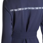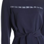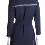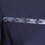 Оригинал. Новая блузка-туника концерна Max Mara (линия Studio) темно-синего цвета со вставкой из кружевной ленты. Женственный удлиненный свободный покрой, слегка расклешенный от талии, с подвязкой на пояс (в комплекте). Скругленная линия горловины. Застежка по спинке на молнию. Рукав длиной 3/4. Пошив — Италия. В составе: 73% триацетат, 27% п.э — ткань очень мягкая, бархатистая. Состояние — новое, из аутлета концерна Max Mara (ярлык бренда надрезан — это политика аутлета).