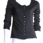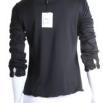 Новая трикотажная блуза французского бренда класса «люкс» Zapa Paris черного цвета. Оригинальный дизайнерский фасон с отстроченными складочками и объемными петлями на горловине и длинном рукаве. Застежка на перламутровые пуговки. Премиальное качество пошива и материалов. В составе 70% натуральный шелк, 30% хлопок — ткань экстра качества: очень мягкая, шелковистая. Эксклюзив: в единственном экземпляре в России. Состояние — новое, с фирменной биркой Zapa. Цена на бирке — 160 евро (!)