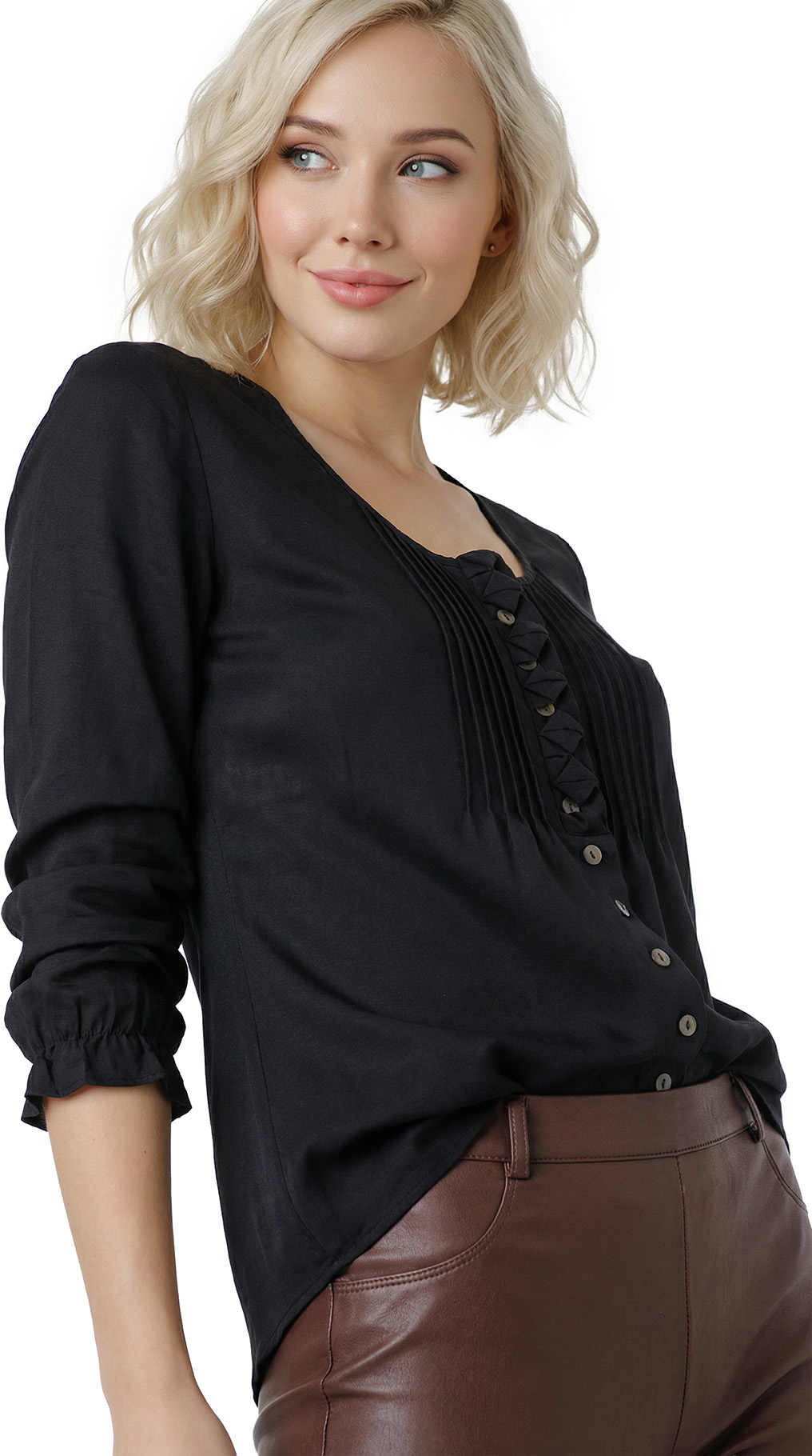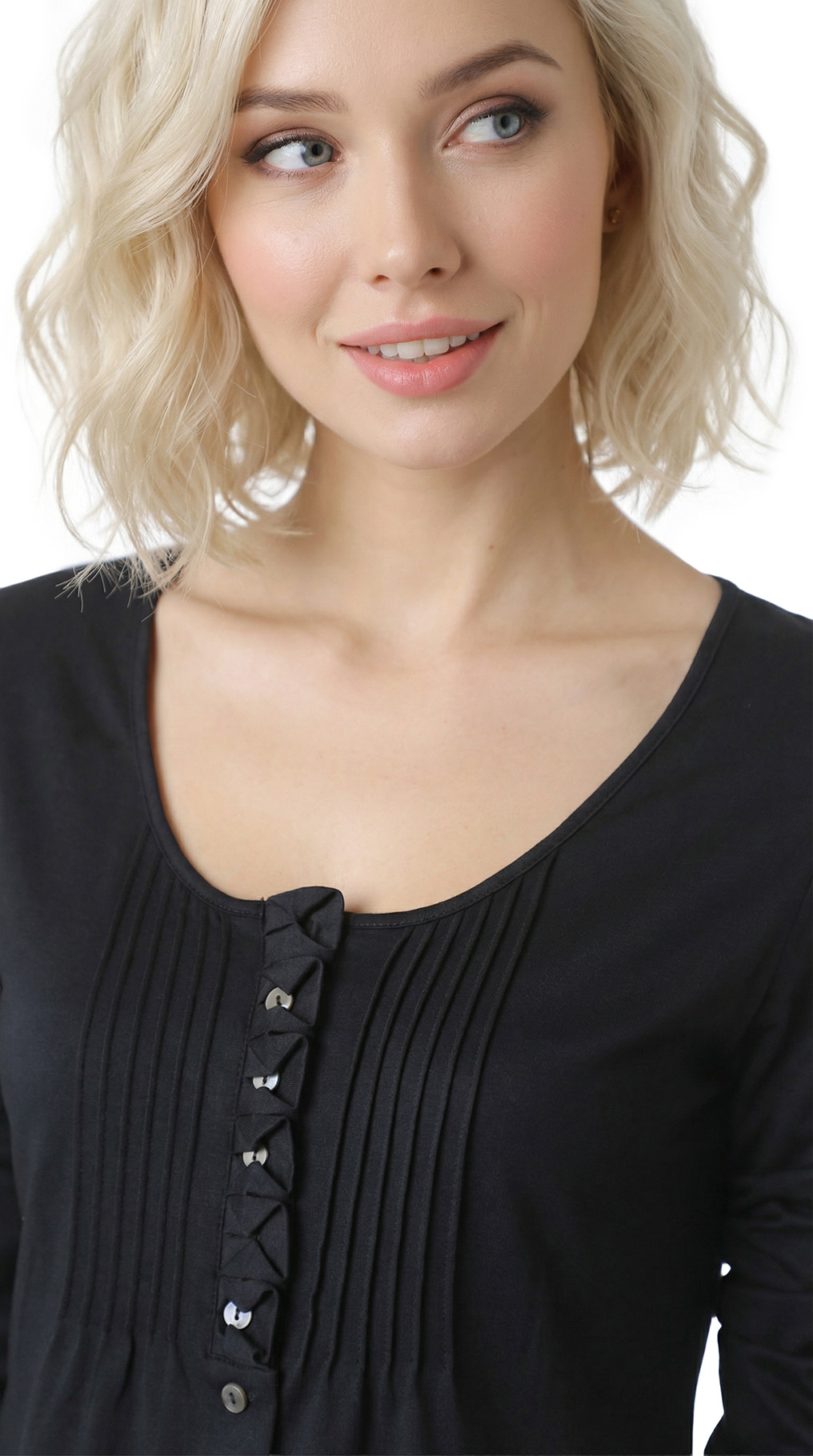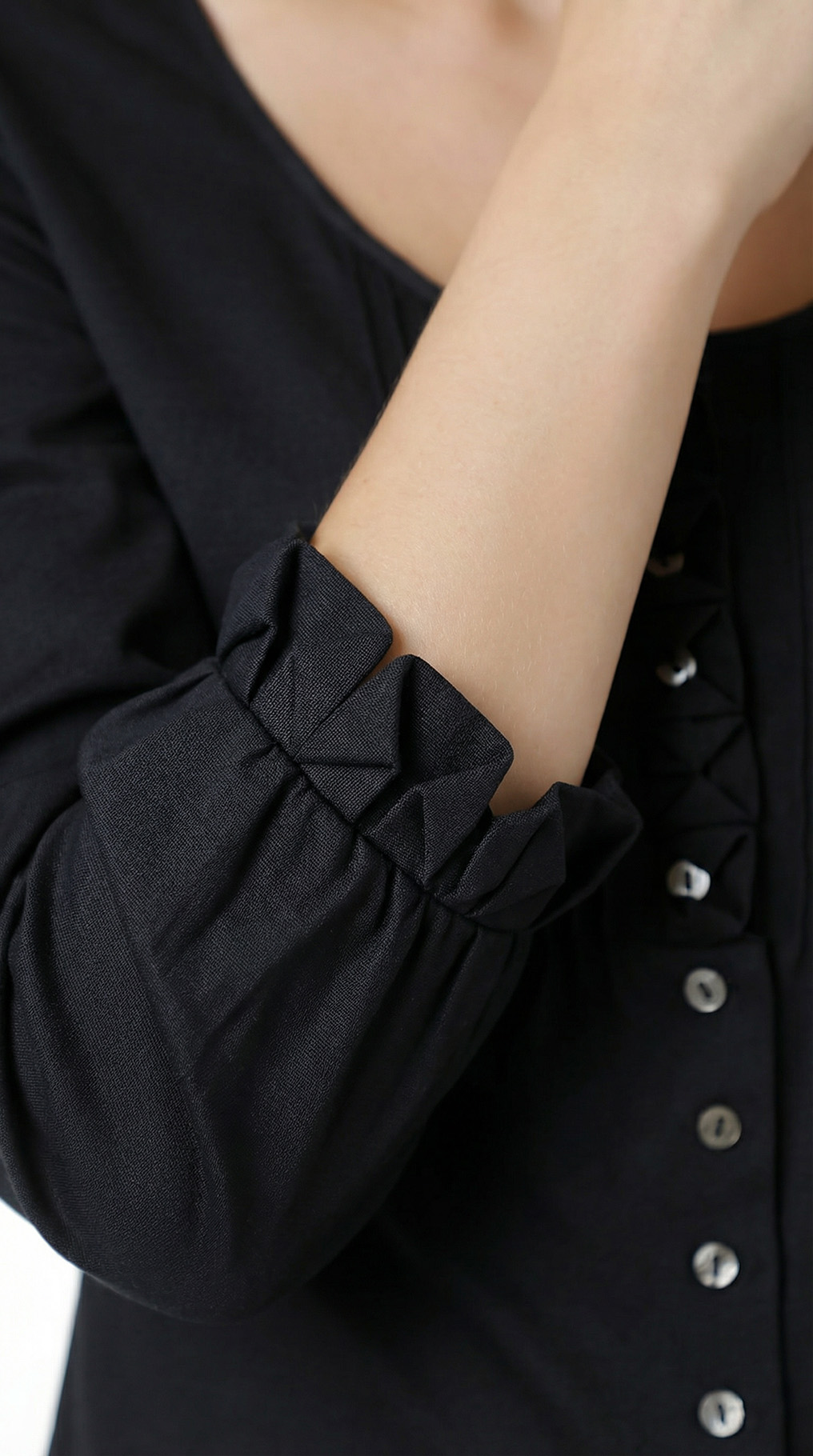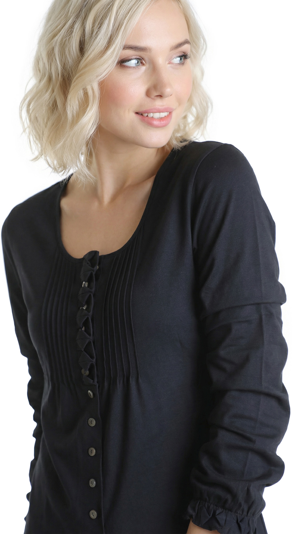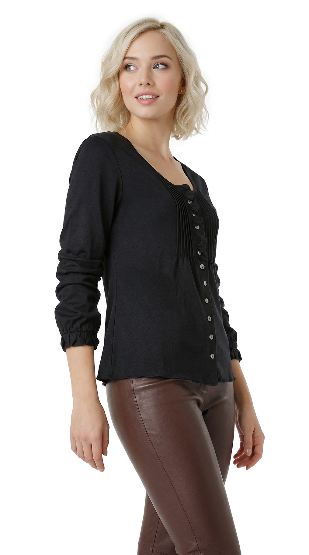 Новая трикотажная блуза французского бренда класса «люкс» Zapa Paris черного цвета. Оригинальный дизайнерский фасон с отстроченными складочками и объемными петлями на горловине и длинном рукаве. Застежка на перламутровые пуговки. Премиальное качество пошива и материалов. В составе 70% натуральный шелк, 30% хлопок — ткань экстра качества: очень мягкая, шелковистая. Эксклюзив: в единственном экземпляре в России. Состояние — новое, с фирменной биркой Zapa. Цена на бирке — 160 евро (!)