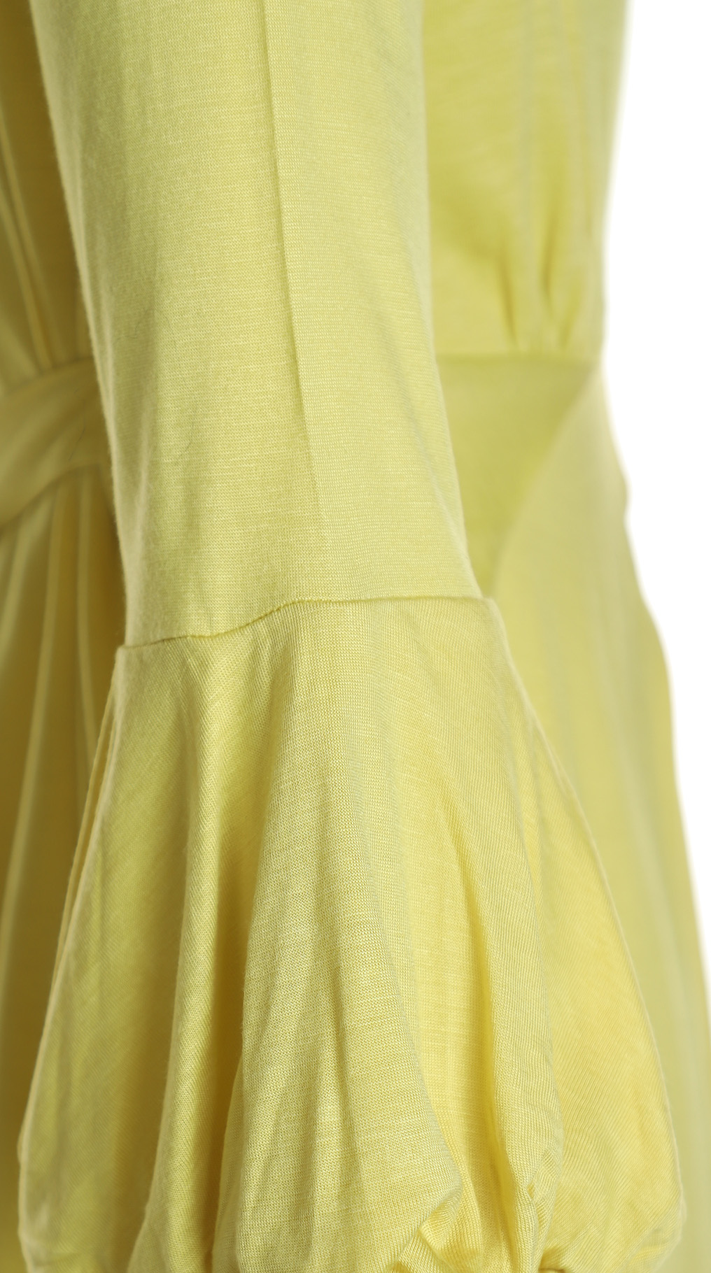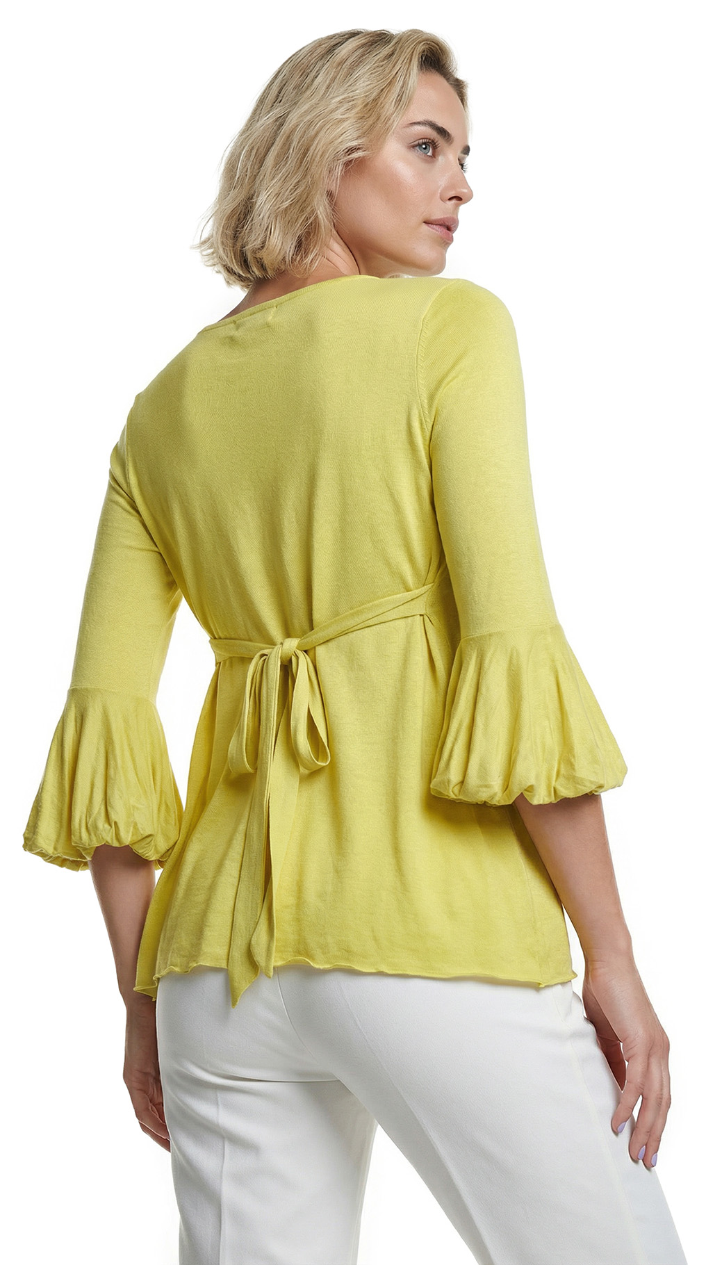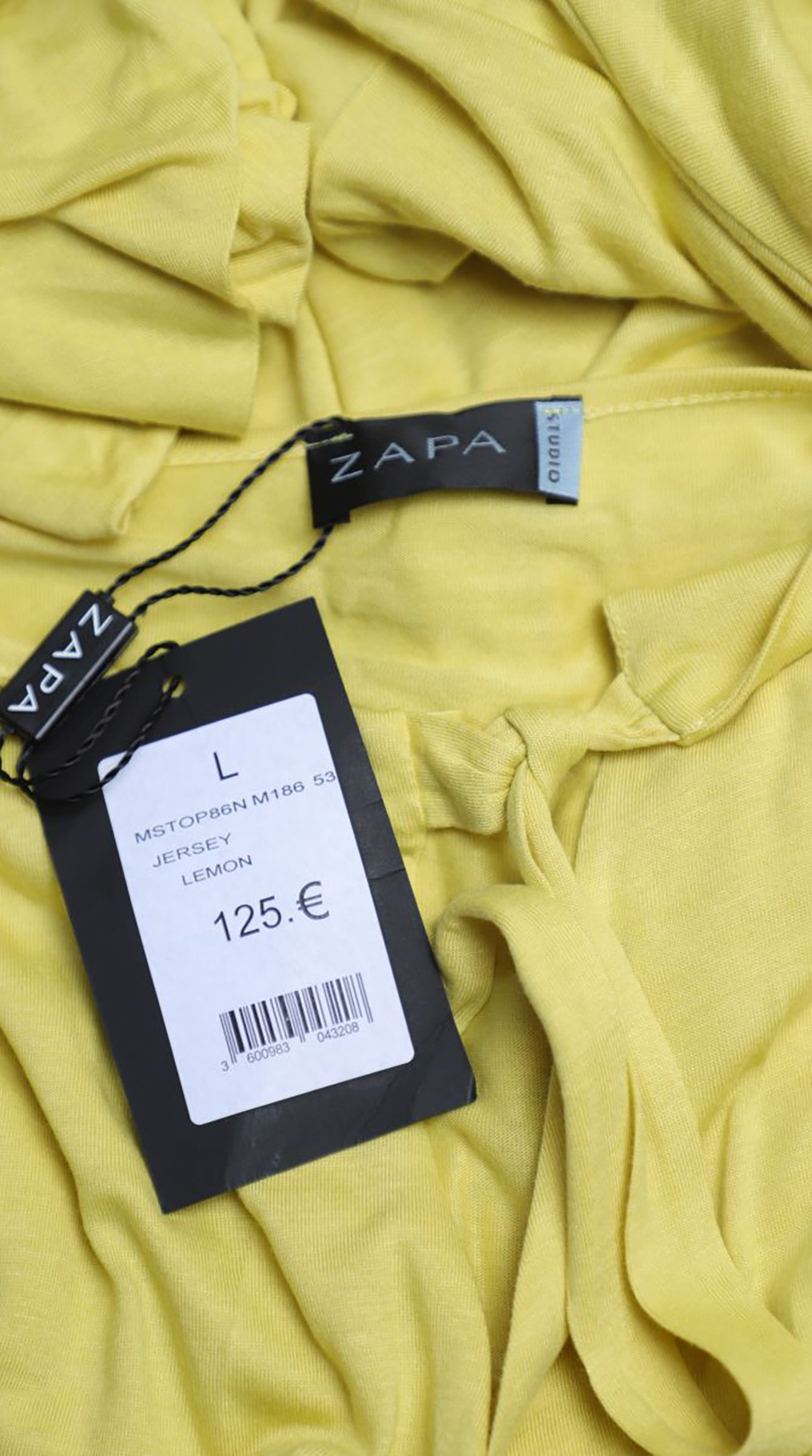 Новая трикотажная блуза французского бренда класса «люкс» Zapa Paris яркого лимонного цвета. Женственный приталенный фасон с рукавом 3/4, декорированным жабо. Вырез «капелька» на груди с подвязкой на кантик. Красивые складочки по талии, визуально стройнящие фигурку. Подвязка на пояс по талии. Премиальное качество пошива и материалов. В составе 100% вискоза — ткань экстра качества: очень мягкая, шелковистая, эластичная. Эксклюзив: в единственном экземпляре в России. Состояние — новое, с фирменной биркой Zapa. Цена на бирке — 125 евро.