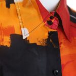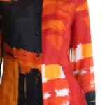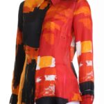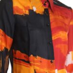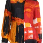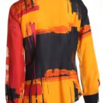 Яркая шелковая блузка немецкого премиального бренда Apriori в рыже-красно-бело-черных тонах. Женственный приталенный фасон с классическим отложным воротничком, длинным рукавом и застежкой на пуговки. В составе 100% натуральный шелк: легкий, как пушинка, мягкий, с естественным шелковистым отливом. Состояние — отличное.