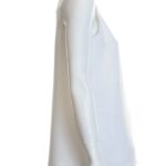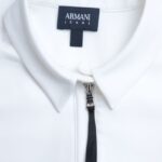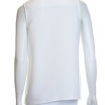 Стильная блузка Armani Jeans белого цвета с атласными полосами в боковых швах и застежкой на серебряную молнию. Свободный фасон «безрукавка» с классическим отложным воротничком. Универсальное внесезонное дополнение к блузке, юбочке или брючкам. Бирка с составом срезана — экспертная оценка — п.э. Фактура ткани — крепе, очень мягкая с приятным шелковистым отливом. Состояние — идеальное, как новое.