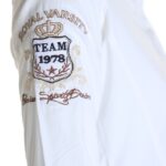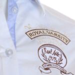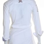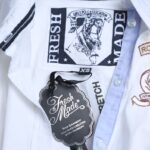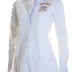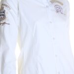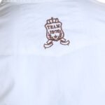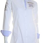 Новая блузка итальянского бренда Fresh Made белого цвета с нежно-голубыми манжетами и потайной планкой под пуговки. Стильная аппликация на груди, рукаве и спинке. Удлиненный приталенный фасон с длинным рукавом (манжеты отворачиваются) и классическим отложным воротничком. Застежка на перламутровые пуговки. В составе 97% хлопок, 3% эластан — ткань легкая, эластичная. Состояние — новое, с фирменной биркой Fresh Made.