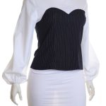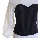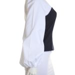 Новая блузка H&M бело-черного цвета. Женственный приталенный фасон с длинным присборенным пышным рукавом «фонарик». Застежка на молнию по спинке. В составе: 30% хлопок, 70% п/э (белая вставка), 33% вискоза, 65% п/э, 2% эластан (черная вставка). Состояние — новое, без бирки.