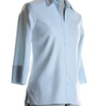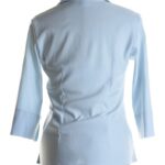 Женственная приталенная блузка H&M нежно-голубого цвета с классическим воротничком «стойкой» и рукавом 3/4. Застежка на перламутровые пуговки. В составе 67% вискоза, 23% п/э. Состояние — идеальное, как новое.