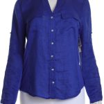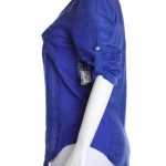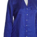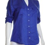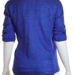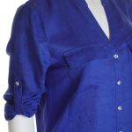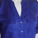 Новая блузка американского бренда Inc International Concepts васильково-синего цвета. Женственный полу-приталенный фасон с трикотажными боковыми вставками и округлым скосом по низу. Застежка на яркие «хрустальные» пуговки. V-образный вырез горловины. Длинный рукав, отворачиваемый в 3/4 отворачиваемой манжетой с пуговкой. Большие накладные кармашки по переду. Оригинал из США. В составе: 100% натуральный лен (полочки), 100% вискоза (боковины) — ткань экстра качества: средней плотности, мягкая, шелковистая. Состояние новое, с фирменной биркой INC. Цена на бирке — 69.5$.