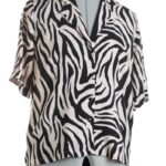 Яркая блузка датского бренда Only (коллекция JDY) со звериным черно-белым принтом. Укороченный прямой фасон с коротким рукавом, отложным воротничком и застежкой на пуговки по переду. В составе 100% вискоза — ткань плотная, приятная на ощупь. Состояние — отличное, как новое.