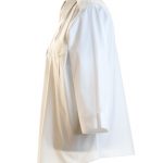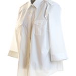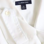 Кипельно-белая хлопковая блузка Lands End рубашечного покроя с воротником-стойкой. Рукав 3/4 с широкой манжетой. Накладные карманы и эполеты с эффектной голубой строчкой. В составе: 97% хлопок, 3% эластан. Состояние — новое, без бирки. Американский размер — 20W (по меркам соответствует российскому размеру 56 (3XL).