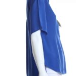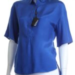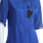 Оригинал. Новая блузка Massimo Dutti яркого лазурно-синего цвета. Полу-приталенный фасон с удлиненной спинкой и приспущенным рукавом длиной 1/2. Застежка на пуговки под потайной планкой. Классический отложной воротничок. Складочка по спинке для комфортной посадки. В составе: 100% вискоза (Rayon/Viscose) — ткань легкая, очень мягкая, шелковистая. Состояние — новое, с фирменной биркой магазина Massimo Dutti. Цена на бирке — 39.95 евро.
