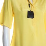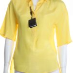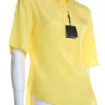 Оригинал. Новая блузка Massimo Dutti яркого солнечно-желтого цвета. Полу-приталенный фасон с удлиненной спинкой и приспущенным рукавом длиной 1/2. Застежка на пуговки под потайной планкой. Классический отложной воротничок. Складочка по спинке для комфортной посадки. В составе: 100% вискоза (Rayon/Viscose) — ткань легкая, очень мягкая, шелковистая. Состояние — новое, с фирменной биркой магазина Massimo Dutti. Цена на бирке — 39.95 евро.