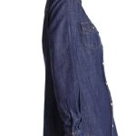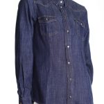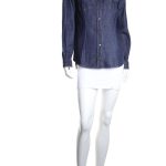 Оригинал с биркой. Новая блузка концерна Max Mara (линия iBlues) темно-синего цвета «под джинсу» с контрастной рыжей отстрочкой. Приталенный покрой с застежкой на стальные пуговки. Классический воротничок. Накладные кармашки на груди. Скругленная линия низа и кокетка по спинке — для комфортной посадки. Пошив — Тунис. В составе: 100% хлопок — ткань средней плотности, мягкая, хорошо держит форму. Состояние — новое, с оригинальной биркой iBlues.