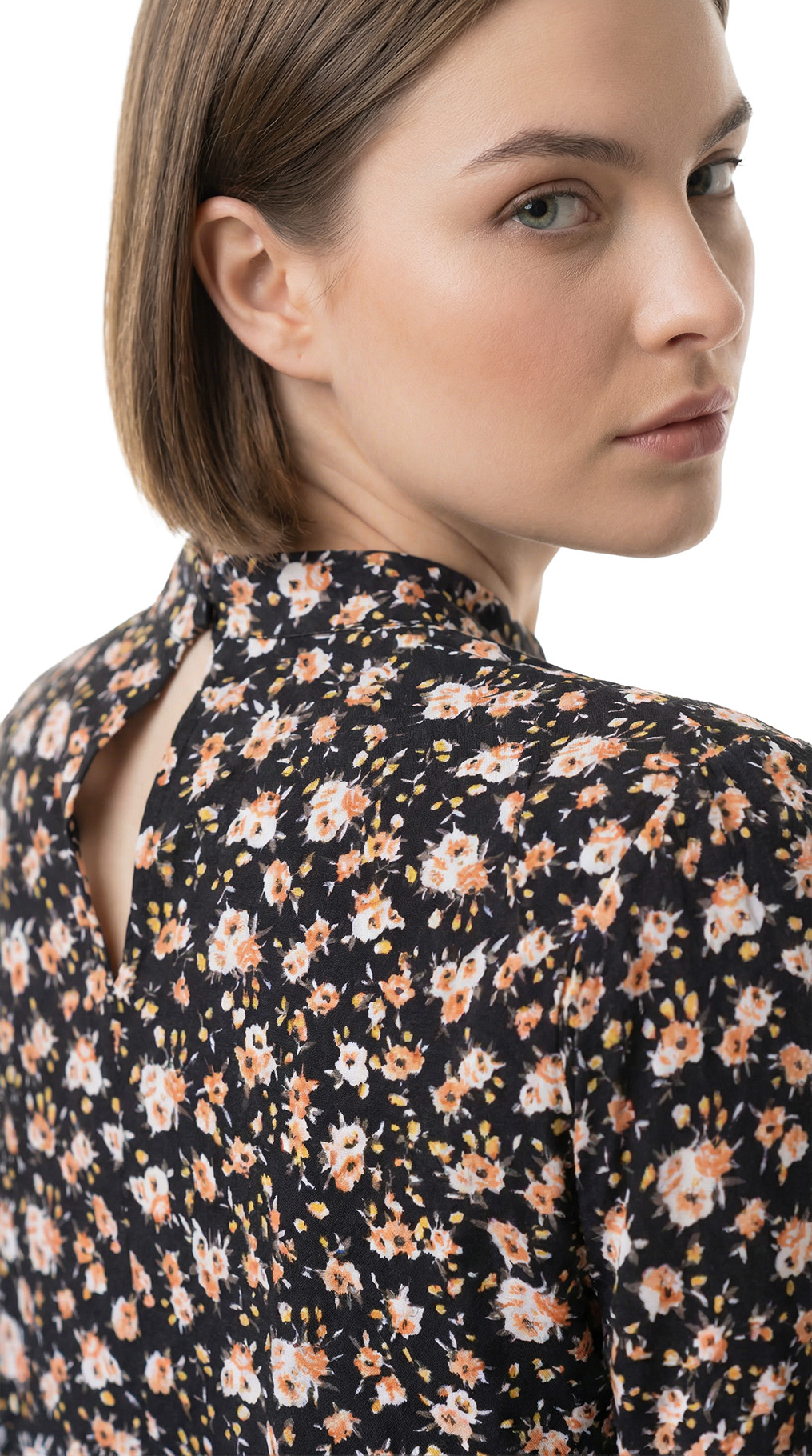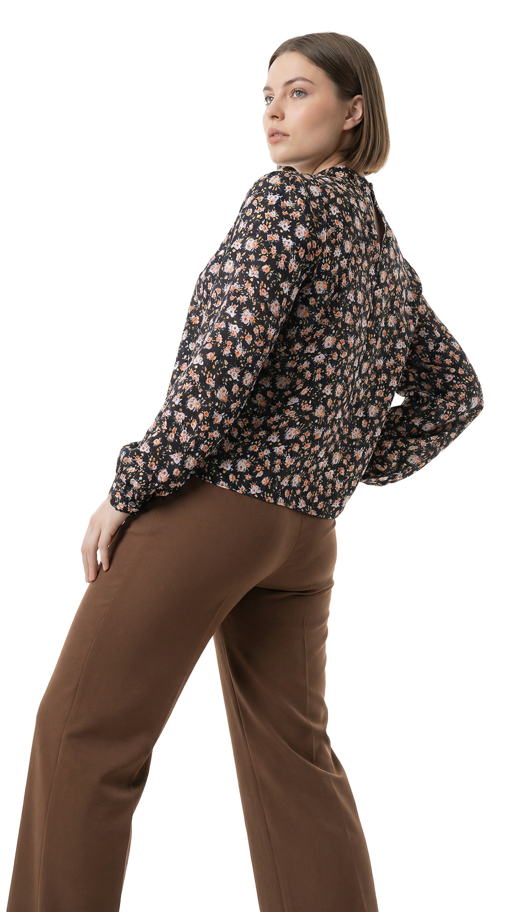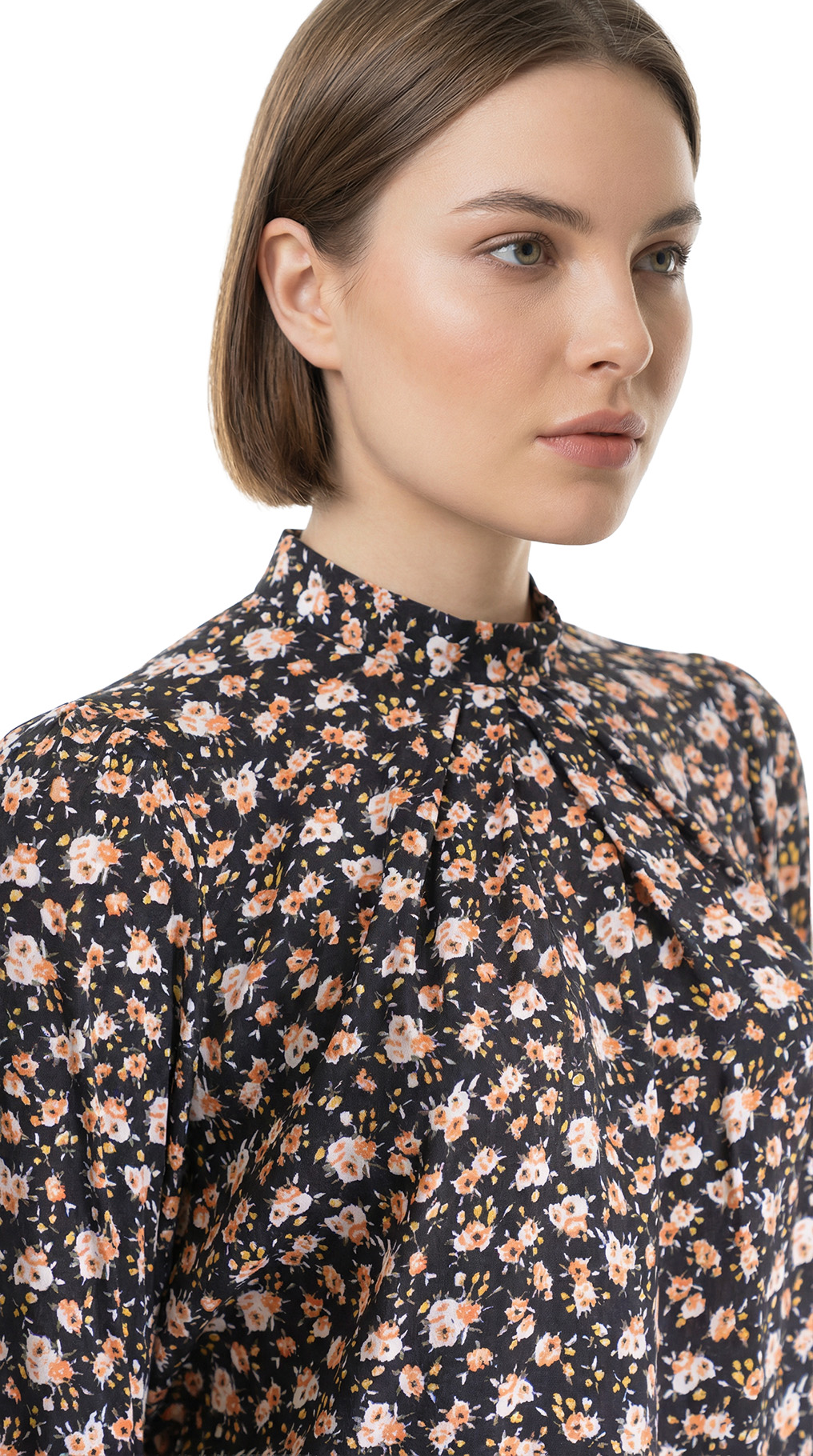 Оригинал с биркой. Новая блузка концерна Max Mara (линия iBlues) с цветочным принтом на темно-коричневом фоне. Прямой фасон с воротничком «стойка» и вырезом «капелька» по спинке с застежкой на пуговки. Складочки на линии декольте — подчеркивают грудь. Длинный рукав с манжетой на пуговках. В составе: 100% вискоза — ткань экстра качества: средней плотности, мягкая, шелковистая. Состояние — новое, с оригинальной биркой iBlues.