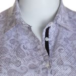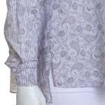 Оригинал. Новая хлопковая блузка концерна Max Mara (коллекция Marina Rinaldi Sport) с коричнево-бежевым «огуречным» принтом на белом фоне. Свободный от груди фасон «трапеция» с длинным рукавом и классическим отложным воротничком. Застежка на перламутровые пуговки с гравировкой бренда Marina Sport. Красивая бейка на потайной планке — при отвороте на рукавах и воротничке смотрится стильно. Чуть удлиненная спинка с вырезами в боковых швах для комфортной посадки. Фирменная бусинка-стеклярус по спинке. В составе: 100% хлопок — ткань экстра качества: легкая, мягкая, комфортная в носке. Состояние — новое, из аутлета концерна Max Mara (ярлык бренда надрезан — это политика аутлета).