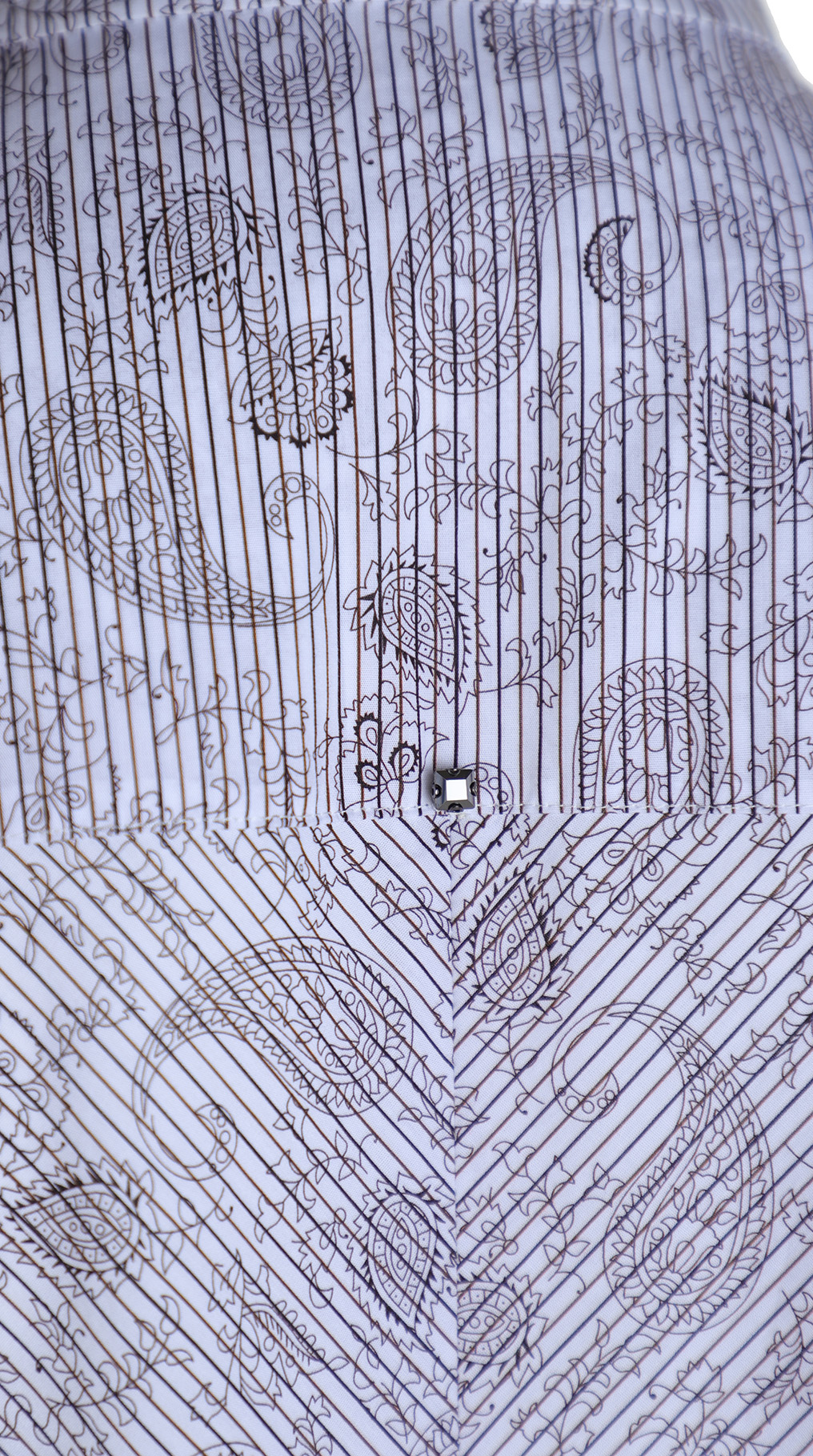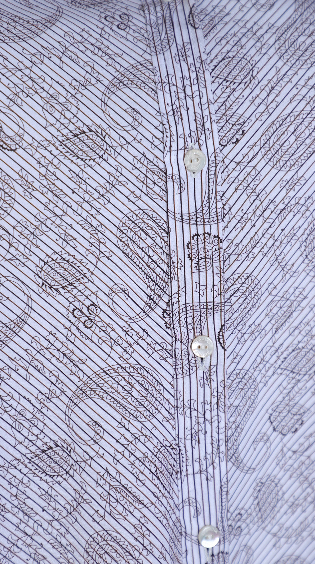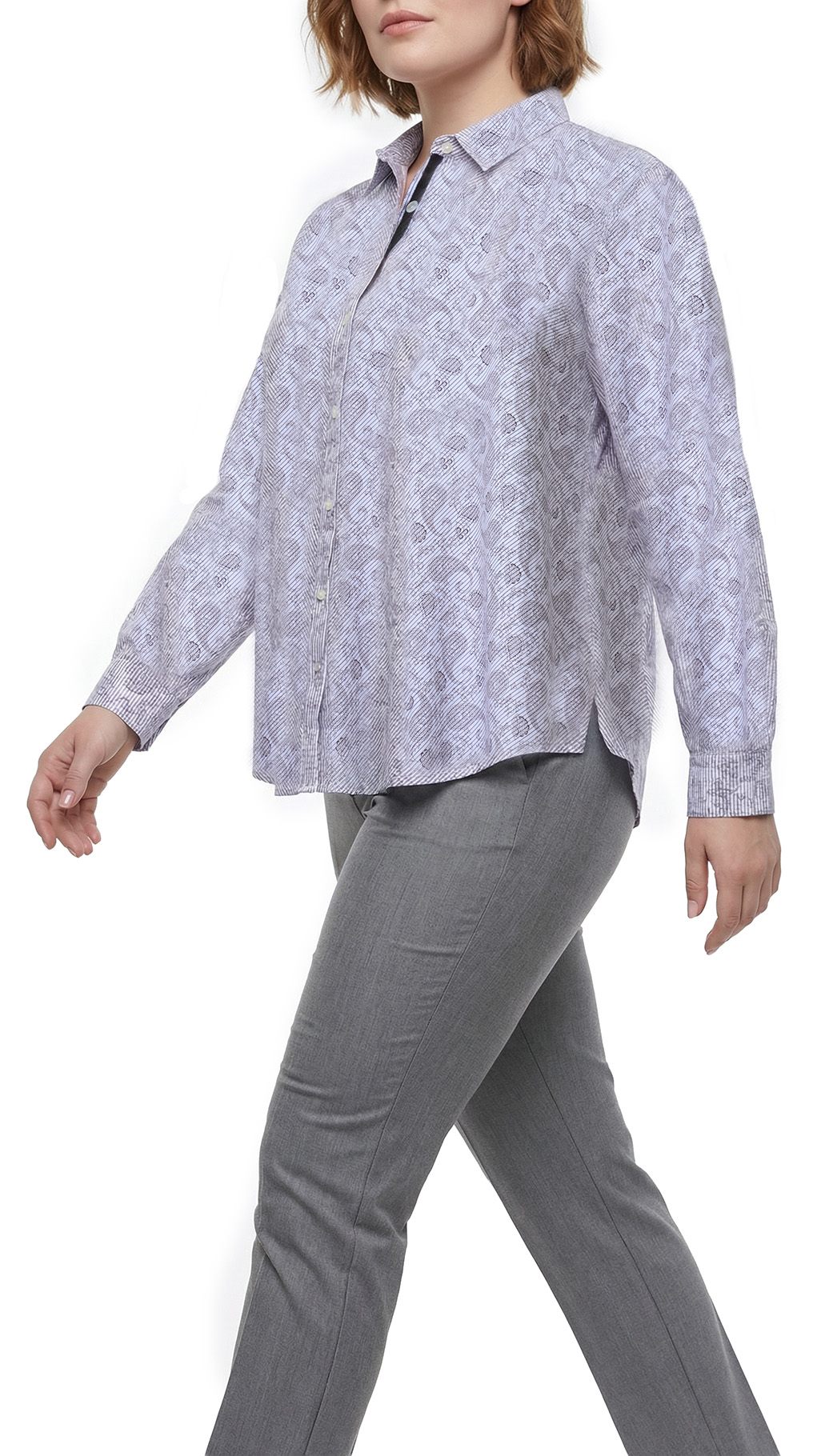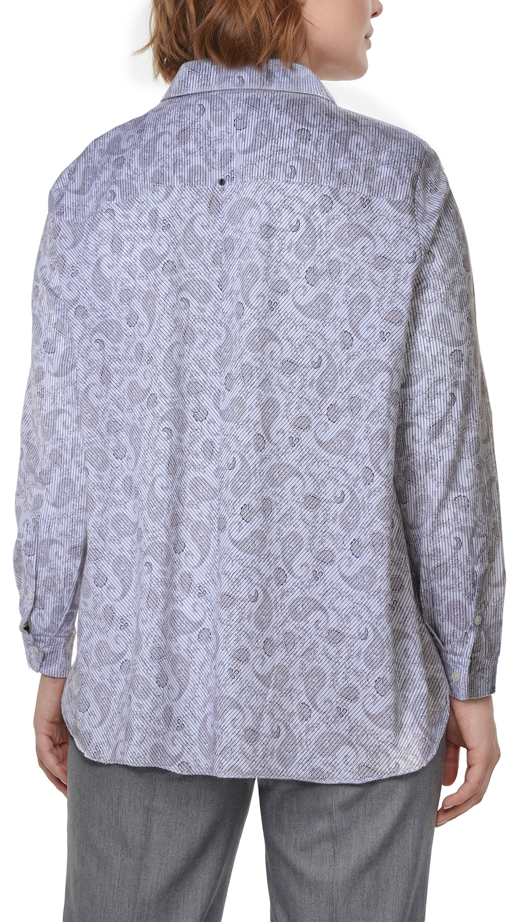 Оригинал. Новая хлопковая блузка концерна Max Mara (коллекция Marina Rinaldi Sport) с коричнево-бежевым «огуречным» принтом на белом фоне. Свободный от груди фасон «трапеция» с длинным рукавом и классическим отложным воротничком. Застежка на перламутровые пуговки с гравировкой бренда Marina Sport. Красивая бейка на потайной планке — при отвороте на рукавах и воротничке смотрится стильно. Чуть удлиненная спинка с вырезами в боковых швах для комфортной посадки. Фирменная бусинка-стеклярус по спинке. В составе: 100% хлопок — ткань экстра качества: легкая, мягкая, комфортная в носке. Состояние — новое, из аутлета концерна Max Mara (ярлык бренда надрезан — это политика аутлета).