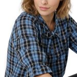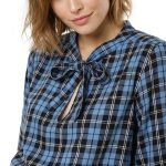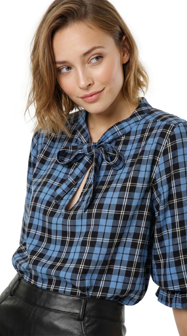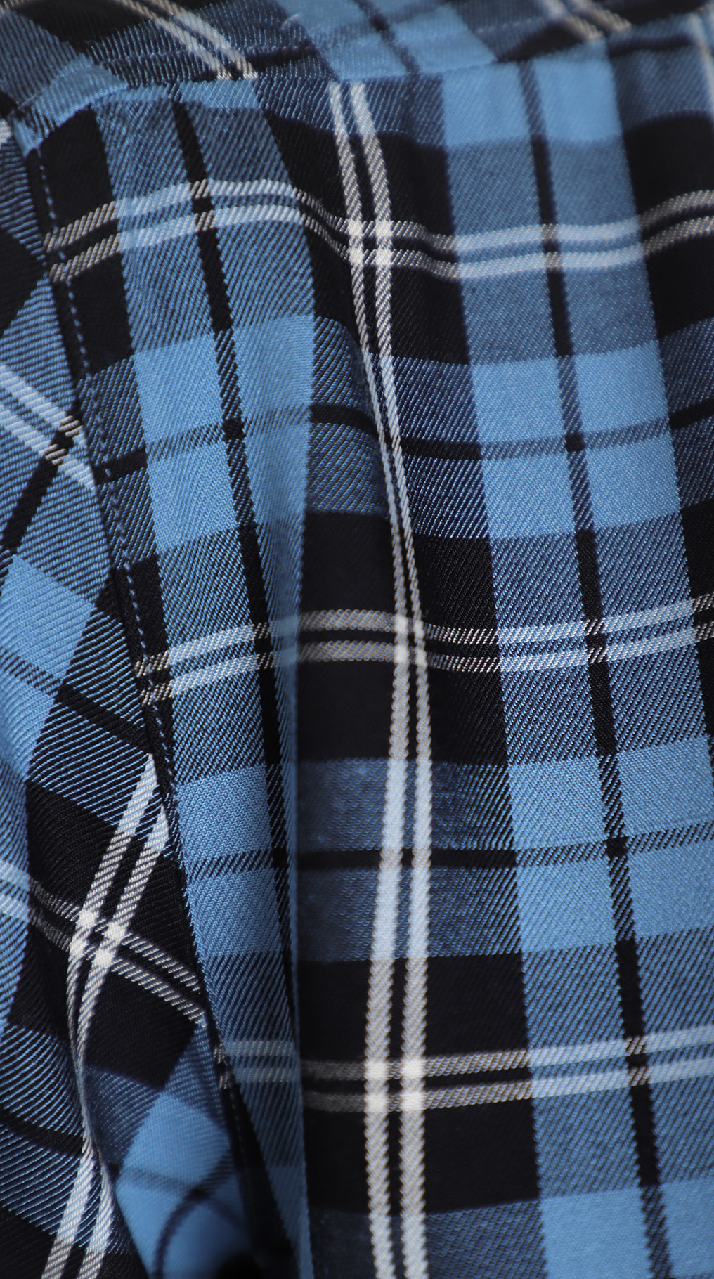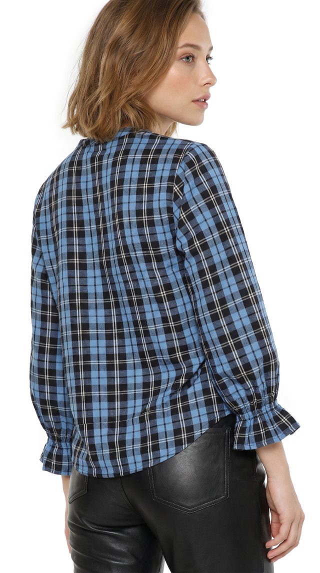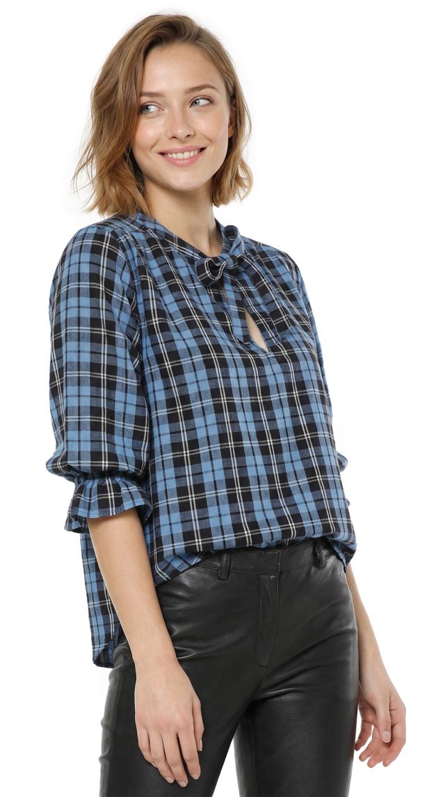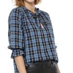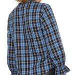 Новая блузка концерна Max Mara в клетку сине-голубых тонов. Свободный прямой укороченный фасон. Подвязка по горловине на бантик и рукав 3/4, декорированный жабо. Скругленная линия низа. Без застежки. В составе: 100% вискоза — ткань экстра качества: легкая, мягкая, комфортная в носке. Состояние — новое, из аутлета концерна Max Mara (ярлык бренда надрезан — это политика аутлета).