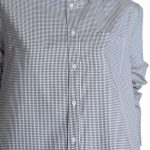 Оригинал. Новая хлопковая блузка концерна Max Mara (коллекция Weekend) в мелкую бело-серо-черную «шахматку». Удлиненный свободный фасон «трапеция» с длинным рукавом и классическим отложным воротничком. Застежка на перламутровые пуговки с гравировкой бренда Weekend. Накладной кармашек на груди. Складочка по спинке. Скругленная линия низа со вставками в боковых швах для комфортной посадки. В составе: 100% хлопок — ткань экстра качества: легкая, мягкая, комфортная в носке. Состояние — новое, из аутлета концерна Max Mara (ярлык бренда надрезан — это политика аутлета).