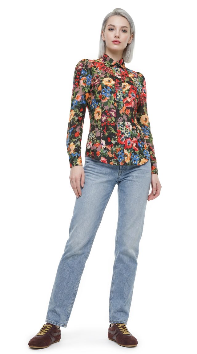 Новая блузка премиального итальянского бренда Moschino (коллекция Love Moschino) с ярким цветочным принтом на черном фоне. Женственный приталенный фасон с длинным рукавом «фонарик» и классическим воротничком. Застежка на брендированные пуговки. Пошив — Европа (Румыния). В составе: 90% вискоза, 10% шерсть — ткань экстра качества: средней плотности, очень мягкая и шелковистая. Состояние — новое, с оригинальной биркой Love Moschino.
