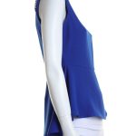 Стильная блузка британского бренда New Look яркого кобальтового цвета с коротким рукавом, декорированным бисером. Женственный фасон с удлиненной спинкой и кокеткой по талии. Застежка по спинке на молнию. В составе: 97% полиэфир, 3% эластан — ткань мягкая, по фактуре «крепе». Состояние — идеальное, как новое.