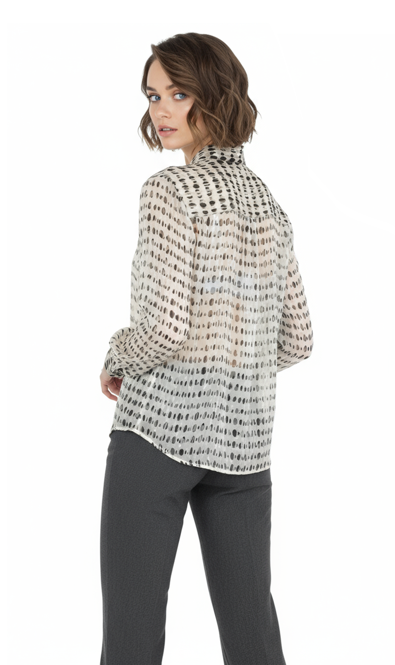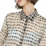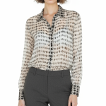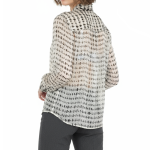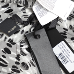 Новая дизайнерская блузка итальянского бренда Pinko с абстрактным узором черных и серых точек на дымчатом светло-сером фоне. Свободный, прямой крой с длинным рукавом на широкой манжете. Классический отложной воротничок. Застежка на фирменные пуговки. В составе: 50% натуральный шелк, 50% вискоза — ткань экстра качества: легкая, практически невесомая, транспарентная. Состояние — новое, с оригинальной биркой Pinko.