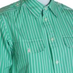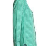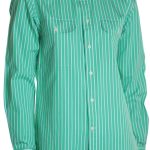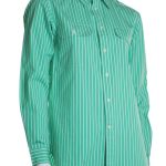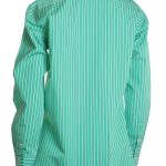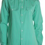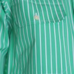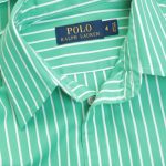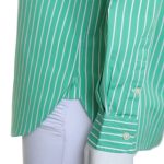 Хлопковая блузка Polo Ralph Lauren яркого зеленого цвета с продольными полосами. Удлиненный прямой фасон с большими кармашками на груди, эполетами на плечах и длинным рукавом. Застежка на перламутровые пуговки. Классический отложной воротничок. Скругленная линия низа. В составе: 100% хлопок — легкий, мягкий, бархатистый. Состояние — новое, без бирки (хранилась в гардеробе без носки).