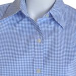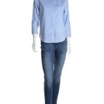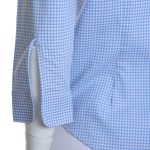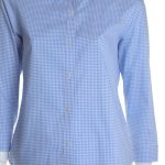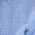 Хлопковая блузка Ralph Lauren светло-голубого цвета в клетку с фирменной, узнаваемой, вышивкой бренда RLL на груди. Полу-приталенный фасон с кокеткой по спинке и рукавом 3/4. Классический отложной воротничок. Застежка на перламутровые пуговки с гравировкой бренда. Скругленная линия низа. В составе: 100% хлопок — ткань экстра качества: легкая, комфортная к телу. Состояние — идеальное, как новое.