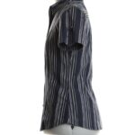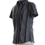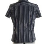 Хлопковая блузка Ralph Lauren черного цвета с золотистыми и серебряными нитями. Классический воротничок «стойка». Женственный приталенный фасон. Короткий рукав. Застежка на пуговки. В составе 100% хлопок. Состояние — как новое, без бирки (хранилась в гардеробе без носки).